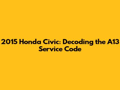 Hey guys! Ever seen a cryptic code pop up on your 2015 Honda Civic's dashboard and felt a wave of panic wash over you? Well, you're not alone! The A13 service code is a common one for this model, and understanding what it means is crucial for keeping your ride in tip-top shape. Let's break it down in a way that's easy to understand, even if you're not a seasoned mechanic. We will explore the meaning of the A13 service code on a 2015 Honda Civic, its implications, and how to address it, ensuring your vehicle stays in optimal condition.
