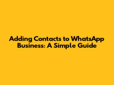 Adding Contacts To WhatsApp Business: A Simple Guide