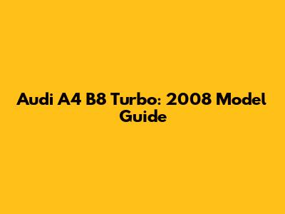 Audi A4 B8 Turbo: 2008 Model Guide