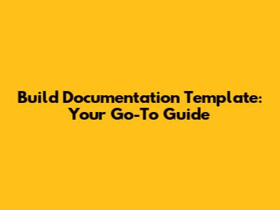 Build Documentation Template: A Comprehensive Guide