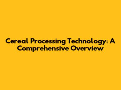 Cereal Processing Technology: A Comprehensive Overview