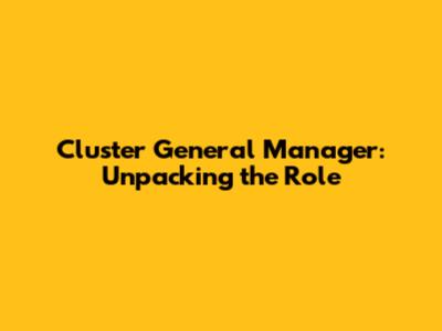Cluster General Manager: What They Do & Why They Matter