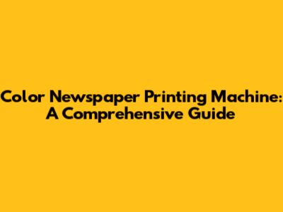 Color Newspaper Printing Machine: Everything You Need To Know