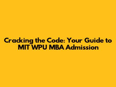 Cracking The Code: Your Guide To MIT WPU MBA Admission