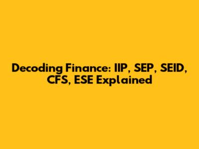Decoding Finance: IIP, SEP, SEID, CFS, ESE Explained
