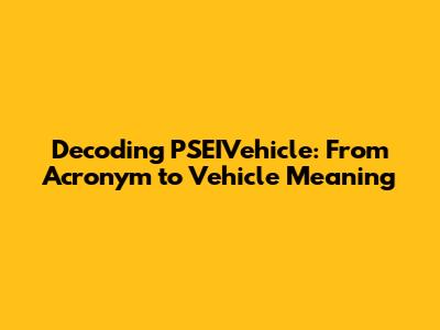 Unveiling the PSEIVehicle Acronym: What Does It Stand For?