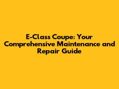 E-Class Coupe: Ultimate Guide To Maintenance & Repair