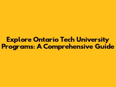 Explore Ontario Tech University Programs: A Comprehensive Guide