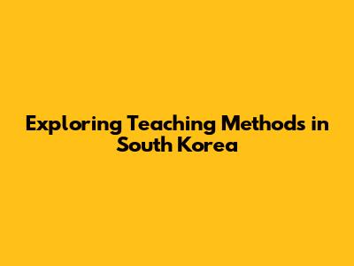Exploring Teaching Methods In South Korea