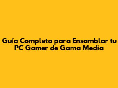 Guía Completa Para Ensamblar Tu PC Gamer De Gama Media