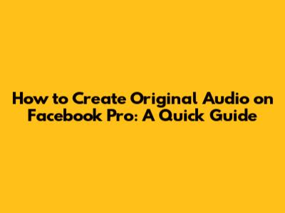 How To Create Original Audio On Facebook Pro: A Quick Guide