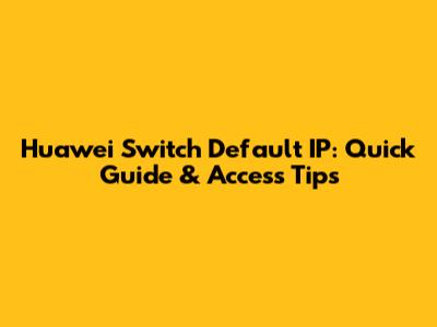 Huawei Switch Default IP: Quick Guide & Access Tips