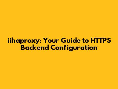 Iihaproxy: Your Guide To HTTPS Backend Configuration