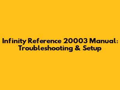 Infinity Reference 20003 Manual: Troubleshooting & Setup