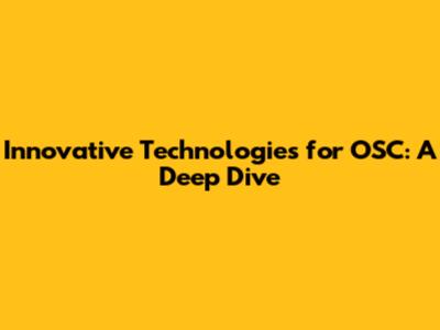 Innovative Technologies For OSC: A Deep Dive