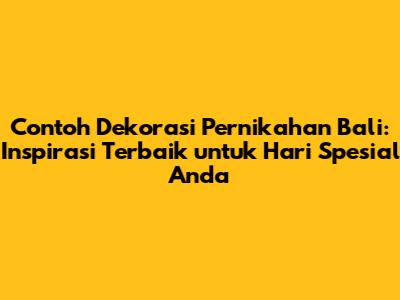 Bali, pulau dewata, bukan hanya terkenal dengan keindahan alamnya yang memukau, tetapi juga dengan kekayaan budayanya yang mendalam. Tidak heran, banyak pasangan memilih Bali sebagai tempat untuk mengikat janji suci. Salah satu aspek penting dalam pernikahan di Bali adalah dekorasi. Dekorasi pernikahan Bali tidak hanya sekadar hiasan, tetapi juga mengandung makna filosofis dan spiritual yang mendalam. Mari kita telusuri berbagai contoh dekorasi pernikahan Bali yang bisa menjadi inspirasi untuk hari spesial Anda.
