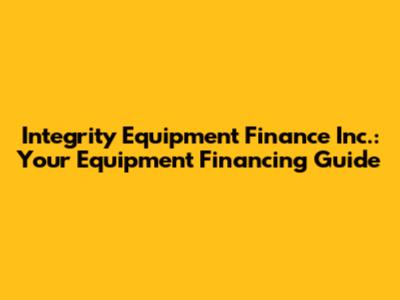 Integrity Equipment Finance Inc.: Your Equipment Financing Guide