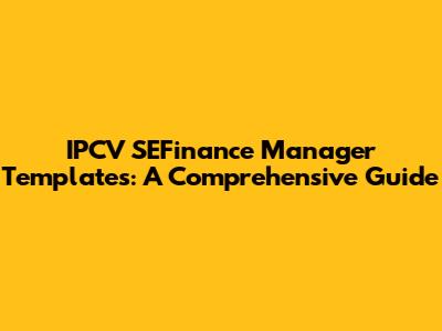 IPCV SEFinance Manager Templates: A Comprehensive Guide