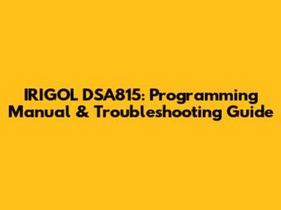 IRIGOL DSA815: Programming Manual & Troubleshooting Guide