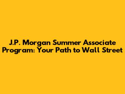 J.P. Morgan Summer Associate Program: Your Path To Wall Street