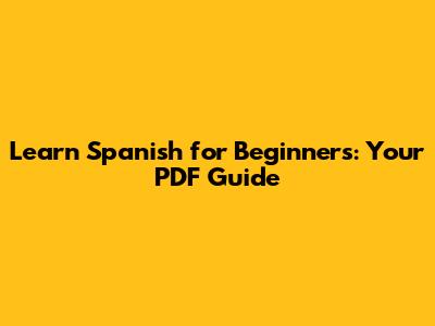 Learn Spanish For Beginners: Your PDF Guide