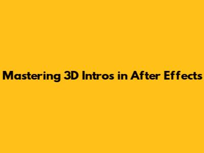 Mastering 3D Intros In After Effects