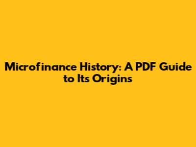 Microfinance History: A PDF Guide To Its Origins