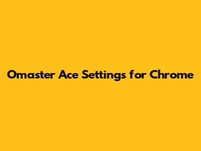 Essential Omaster Ace Settings Within Chrome
