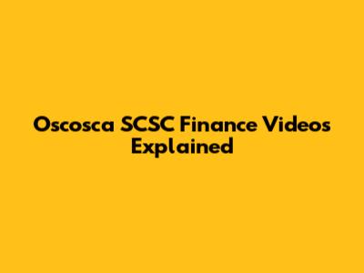 What Exactly Are Oscosca SCSC Finance Videos?