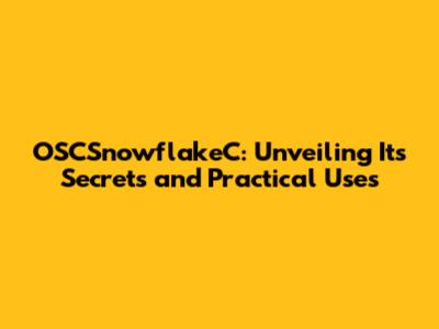 OSCSnowflakeC: Unveiling Its Secrets And Practical Uses