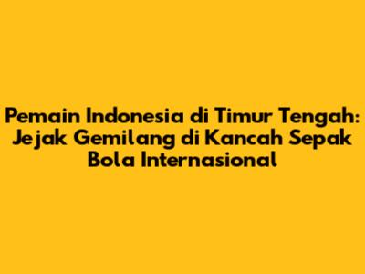Pemain Indonesia di Timur Tengah – Hay, para penggemar sepak bola Tanah Air! Kalian pasti penasaran kan, siapa saja sih pemain sepak bola Indonesia yang pernah unjuk gigi dan bahkan sukses di panggung sepak bola Timur Tengah yang eksotis? Nah, artikel ini bakal mengupas tuntas perjalanan para pahlawan lapangan hijau kita yang berani mengadu nasib di negeri-negeri kaya minyak. Kita akan menyelami kisah-kisah inspiratif, mulai dari perjuangan awal, tantangan yang dihadapi, hingga prestasi membanggakan yang berhasil mereka ukir. Jadi, siapkan diri kalian untuk terpesona dengan cerita-cerita menarik seputar pemain Indonesia yang menorehkan sejarah di Timur Tengah!
