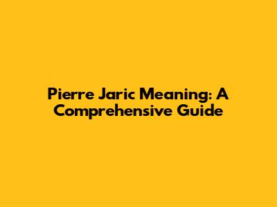 Pierre Jaric Meaning: A Comprehensive Guide