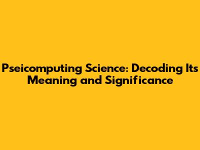 Pseicomputing Science: Unveiling Its Meaning And Impact