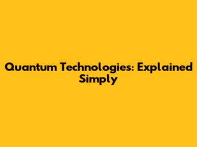 Quantum Technologies: Explained Simply