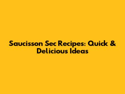 Saucisson Sec Recipes: Quick & Delicious Ideas