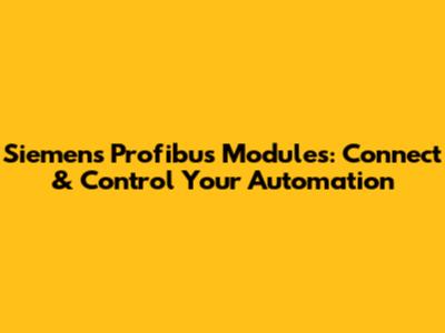 Seamless Setup & Troubleshooting: Mastering Siemens Profibus Module Installation and Configuration