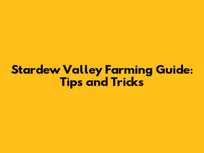 Stardew Valley Farming Guide: Tips And Tricks