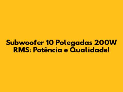 Subwoofer 10 Polegadas 200W RMS: Potência E Qualidade!