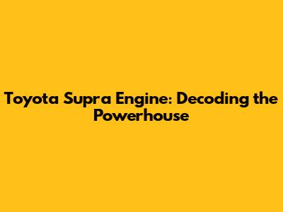 Toyota Supra Engine: Decoding The Powerhouse