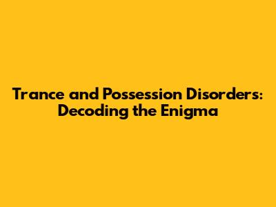 Trance And Possession Disorders: Understanding The Mind