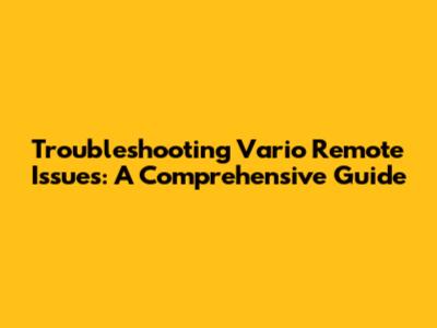 Troubleshooting Vario Remote Issues: A Comprehensive Guide