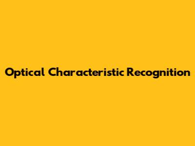 The Future of Optical Characteristic Recognition