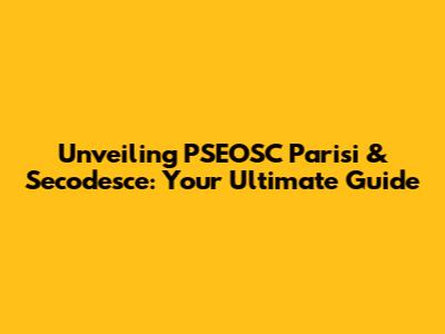 Unveiling PSEOSC Parisi & Secodesce: Your Ultimate Guide