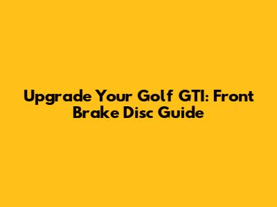 Upgrade Your Golf GTI: Front Brake Disc Guide