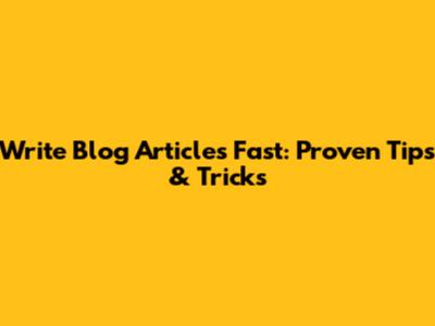 Write Blog Articles Fast: Proven Tips & Tricks